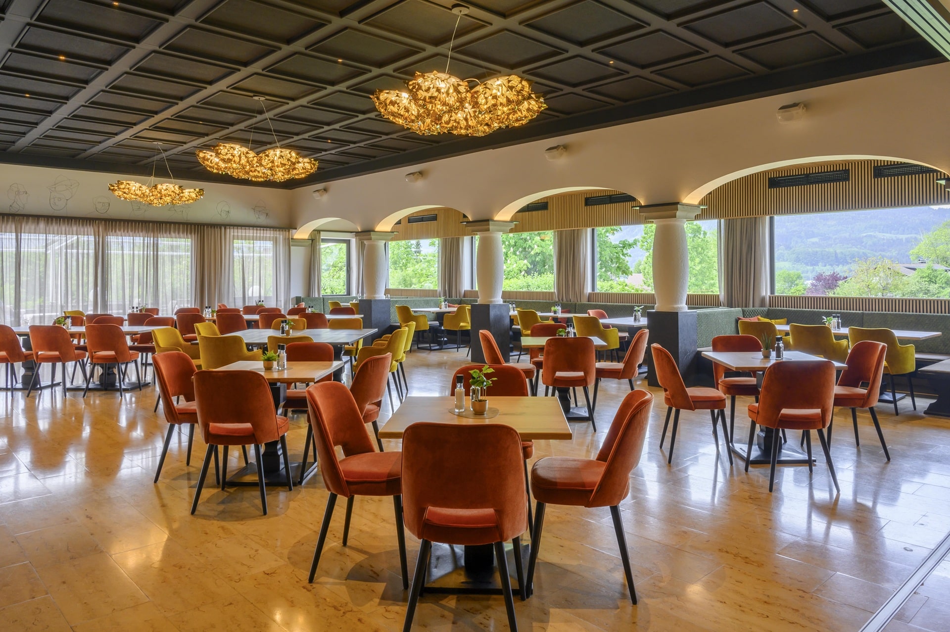 - RAUM MAHLER: 72 m², Tageslicht, freie Bestuhlung; W-Lan, eigener Vorraum/Foyer, direkter Ausgang ins Freie, barrierefrei erreichbar